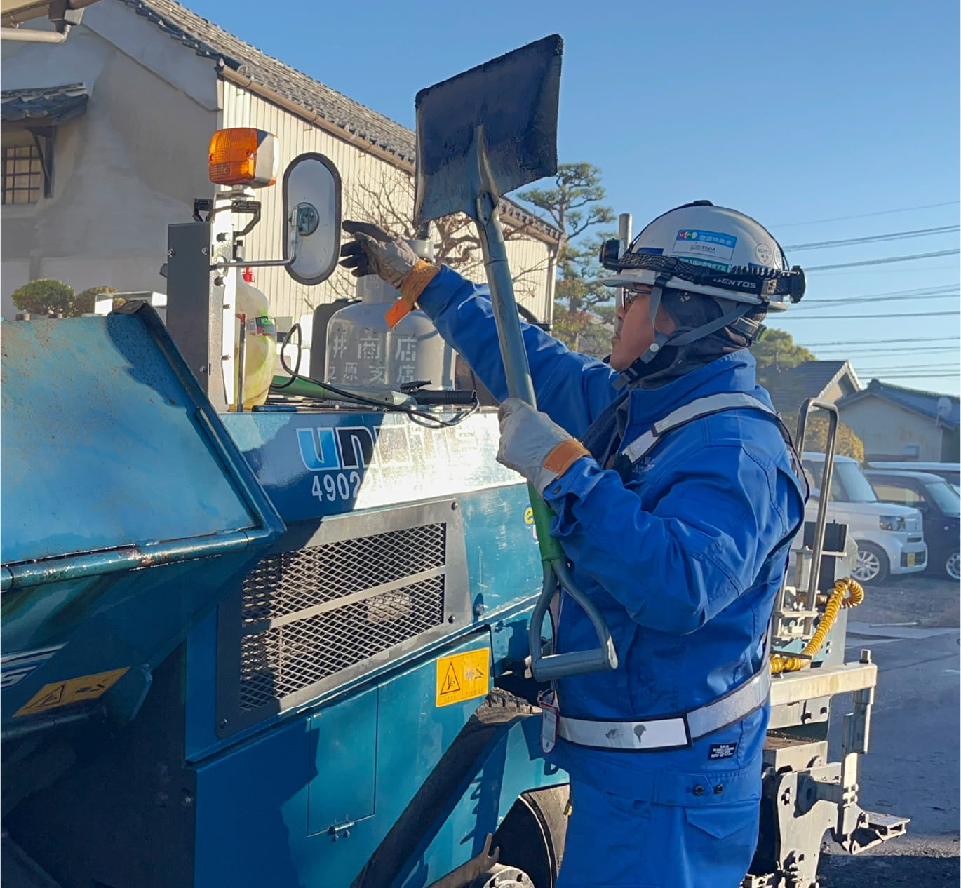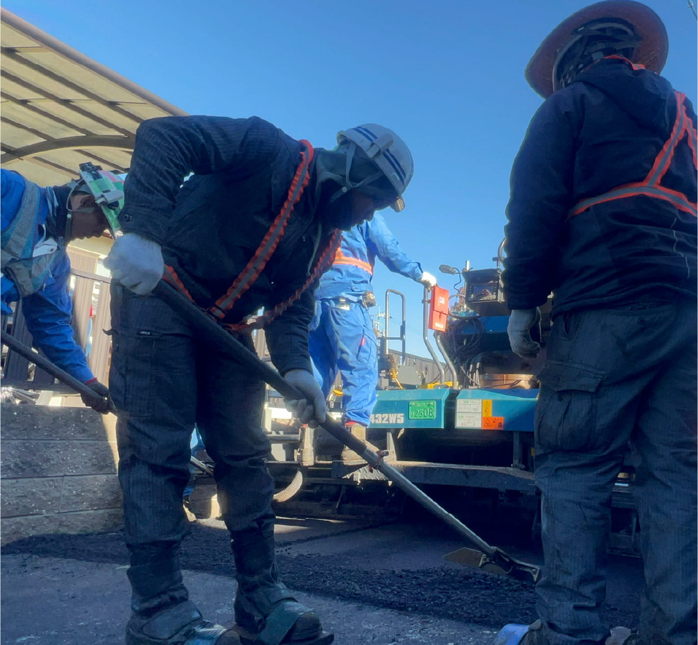 合材がかなり熱くなるので夏場とかは大変だけど、それ以外はそんなにしんどいと思ったことは無いかな。自動車が道路を走るのは毎日見かける光景なので、自分達がそこに関わってると思うと達成感あります!