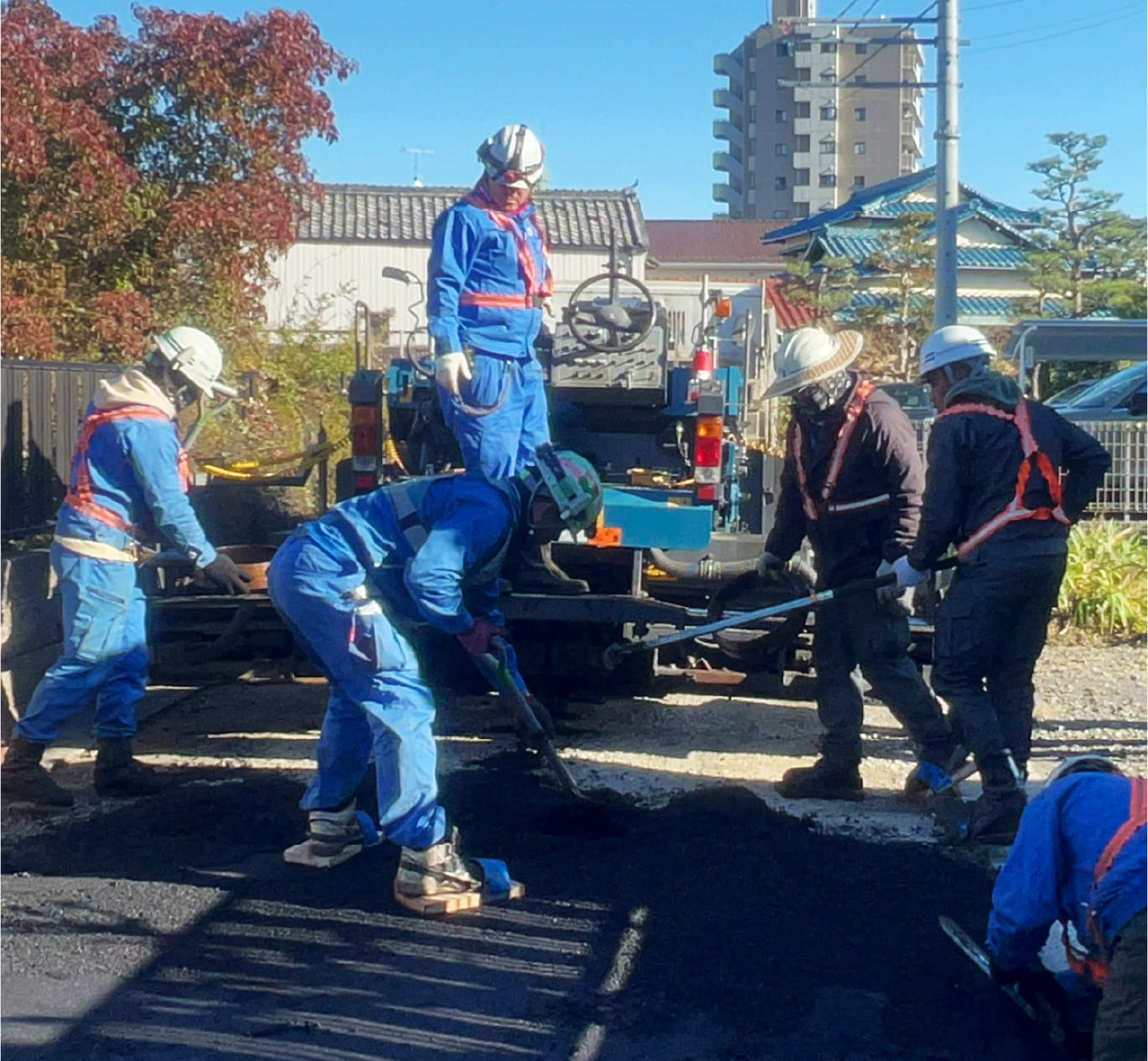 合材がかなり熱くなるので夏場とかは大変だけど、それ以外はそんなにしんどいと思ったことは無いかな。自動車が道路を走るのは毎日見かける光景なので、自分達がそこに関わってると思うと達成感あります!